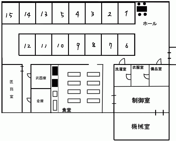 あぁそうか、佳乃は施設のアップグレードの時はいなかったのね。 アップグレードって言っても個室が増えて、医務室、武器庫、倉庫…… |