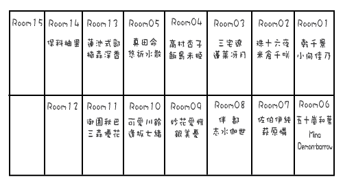 こう見えても悩んだんだよぉ。三森さんと秋巴さん相部屋でOKかなぁとか。 |